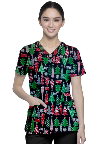Peace and Joy Printed Set 4 Pocket Ladies Half Sleeve (2 Pocket Top and 2 Pocket Black Pant)
