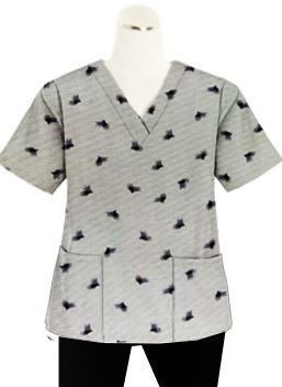 Printed scrub set 4 pocket ladies half sleeve Black Leaf Print (2 pocket top and 2 pocket black pant)